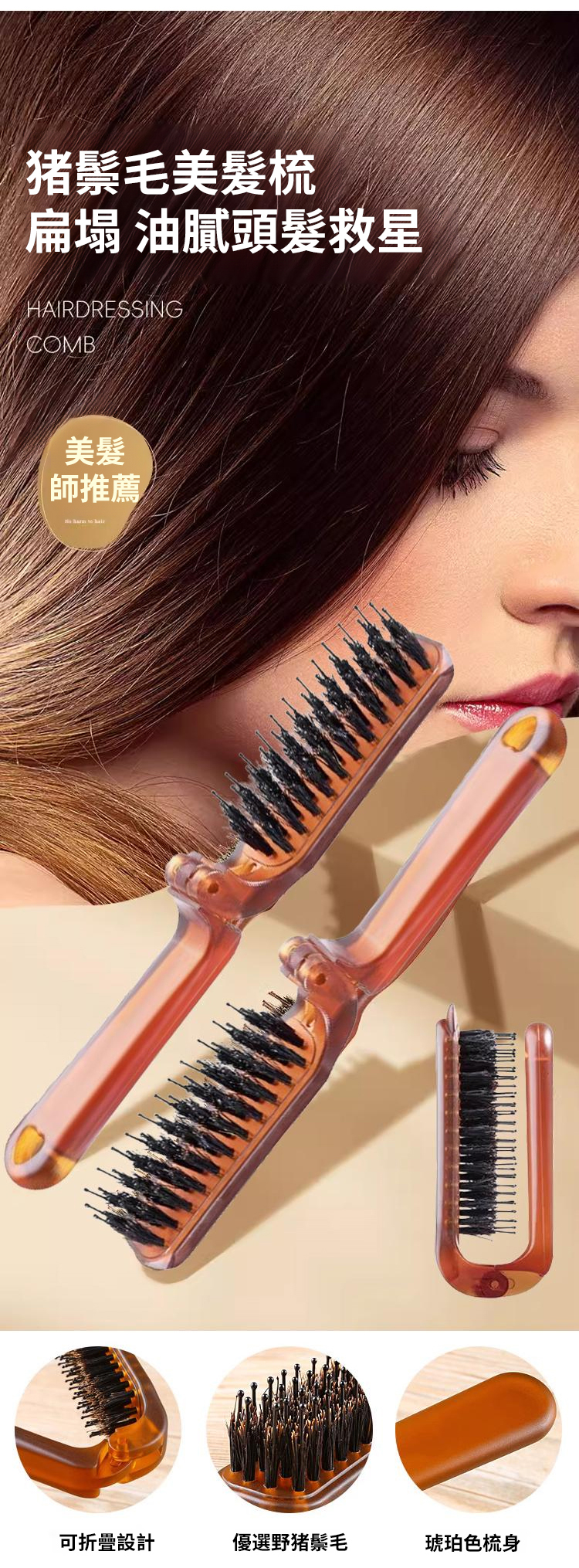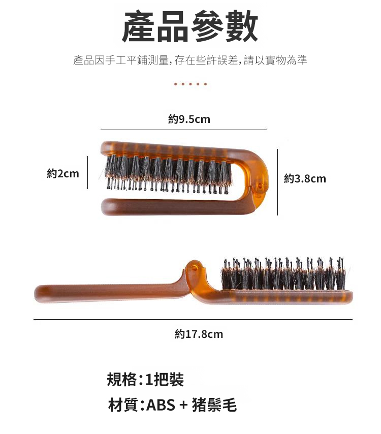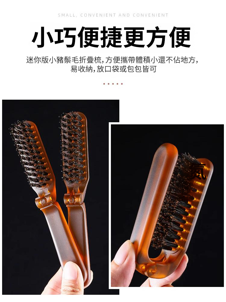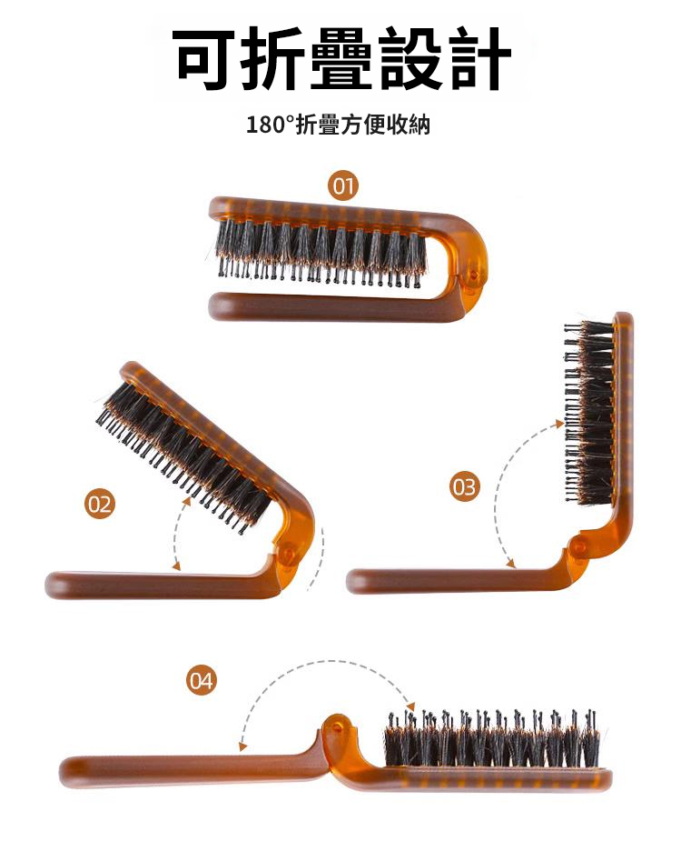 【髮縫消失】折疊款猪鬃毛梳